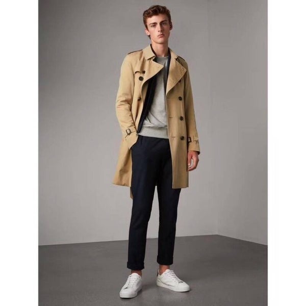 Deze in Engeland gemaakte jas is gemaakt van katoenen gabardine, een stof die in 1879 door Thomas Burberry is uitgevonden. De dichtgeweven stof beschermt tegen wind en regen, maar is toch licht en luchtig.