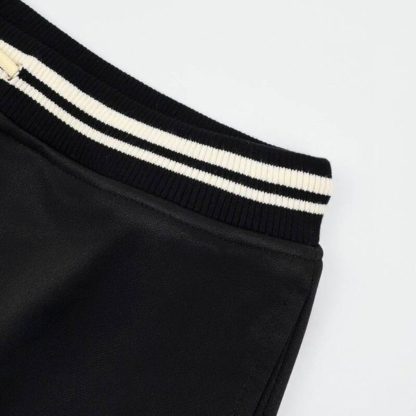 De JJ 191 CE broek met referentie JJ215 is een zwarte Céline trackpant met een rechte snit, wit trekkoord en gestreepte tailleband. Het ontwerp combineert sportieve elegantie met minimalistische luxe.