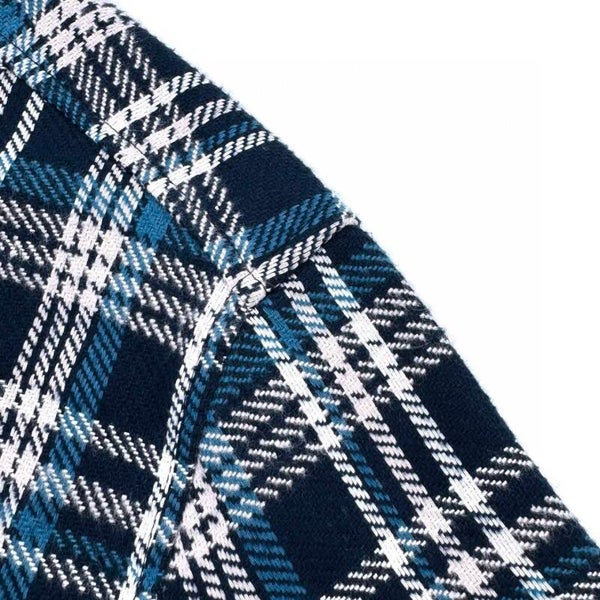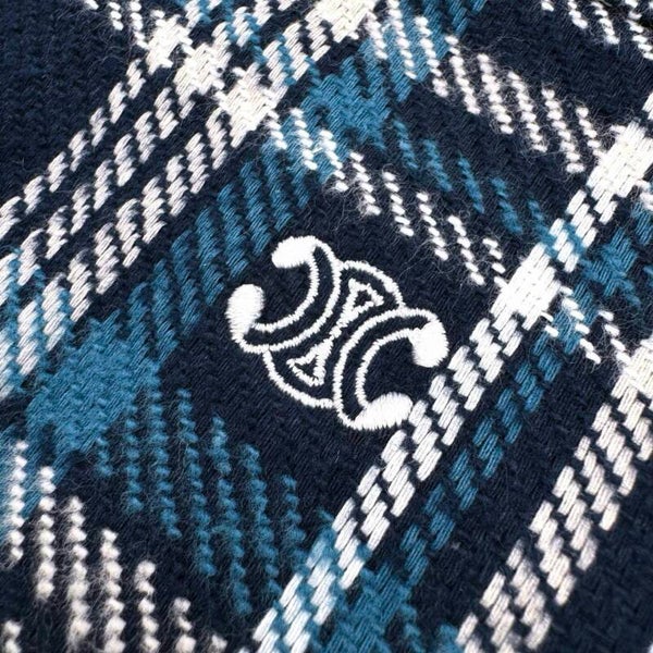 JJ 261 Celina Lange Mouw met referentie JJ8280 is een luxe flanellen overhemd van Céline, uitgevoerd in een blauw-wit geruit patroon met lange mouwen en borstzakken. Het combineert klassieke stijl met moderne Franse elegantie.