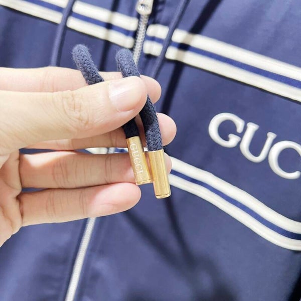 | Designkenmerken | Ritssluiting, capuchon, GUCCI-logo op borst, contrasterende strepen |