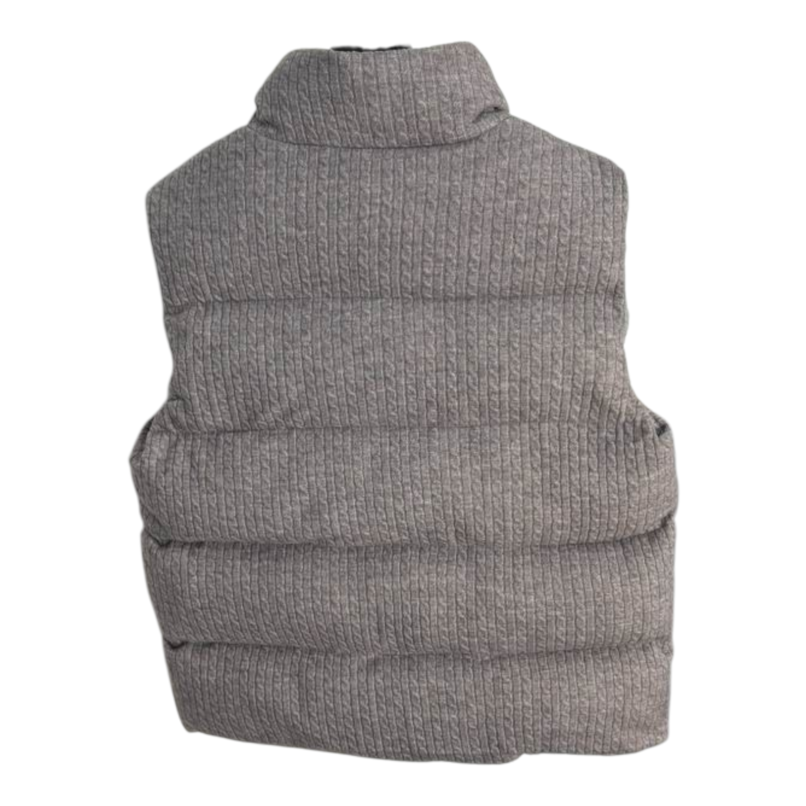 Gewatteerde Bodywarmer (Vest): Een mouwloos, gevoerd gilet met een opstaande colkraag en een geribbelde, doorgestikte textuur (vaak aangeduid als 'Quilted'). De bodywarmer heeft een volledige ritssluiting en het Polo Pony-logo is duidelijk zichtbaar. Dit is een apart statement piece.
