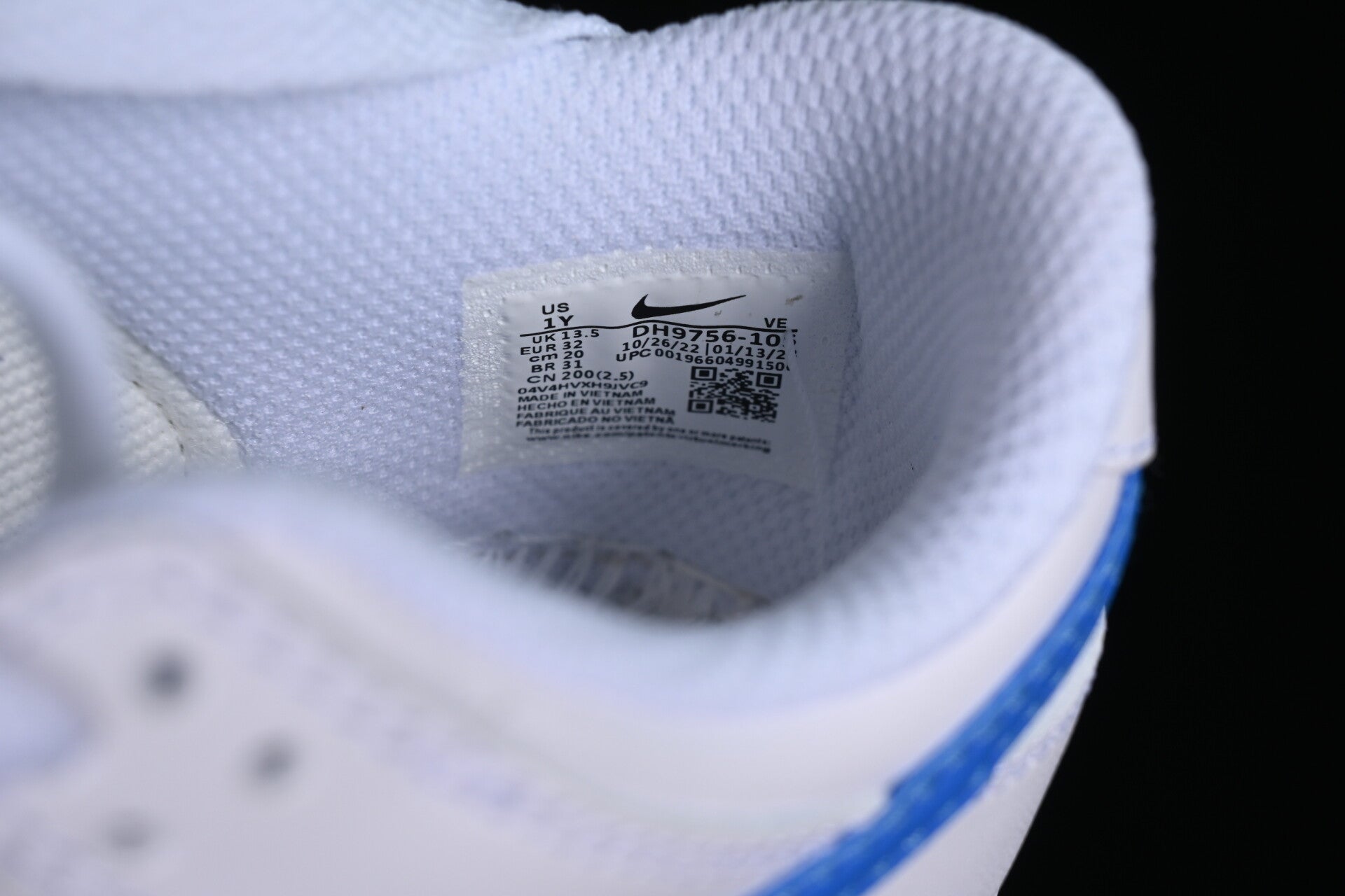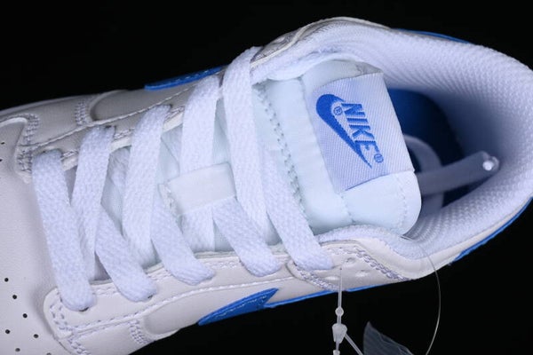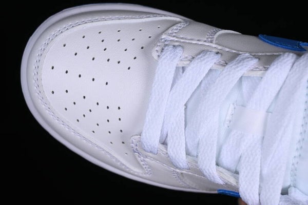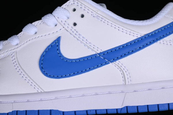 Details: De Swoosh, de buitenzool en de details op de tong en hiel zijn uitgevoerd in het felle blauw, wat zorgt voor een levendig en sportief contrast met het witte bovenwerk. De schoen is uitgevoerd in het iconische low-top silhouet van de Dunk.