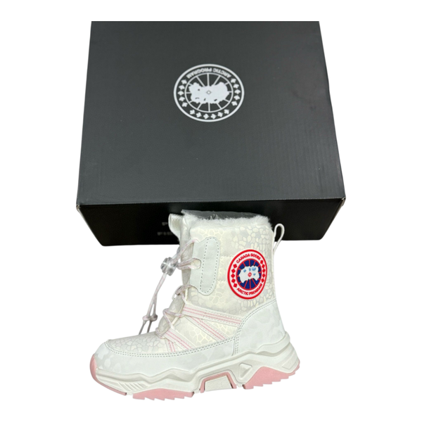 Deze robuuste, hoge kinder snowboots zijn ontworpen om extreme kou en sneeuw te trotseren, en zijn visueel geïnspireerd op de stijl van het Canadese merk. Ze zijn ideaal voor wintervakanties, sneeuwspelletjes en koude winterdagen.
