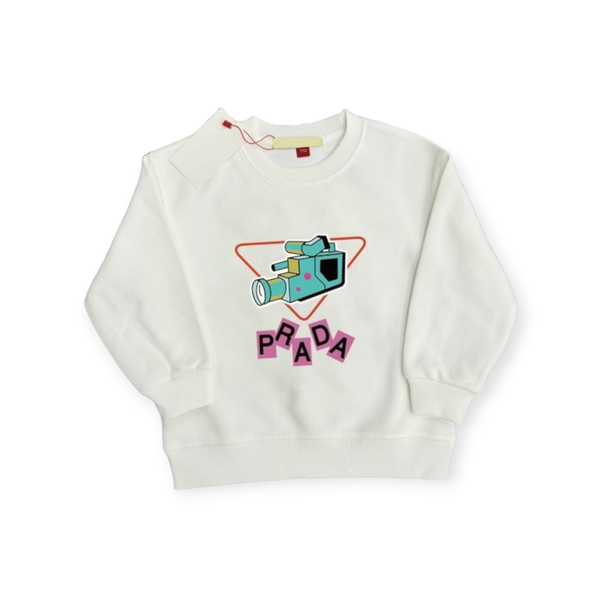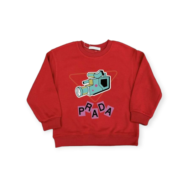 Prada Kinder Sweatshirt met Camera Logo Print | Rood, Zwart, Wit & Lichtblauw | Maat 100-160