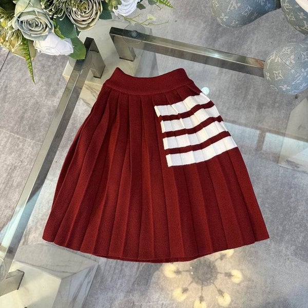 Laat je kind stralen in deze stijlvolle en speelse outfit van Thom Browne, ontworpen voor maten 110–160. De set bestaat uit een cardigan, geplooide rok en bijpassende beanie, allemaal voorzien van een charmant witte teckelmotief. De cardigan heeft vier witte strepen op de mouw en elegante knopen, terwijl de rok perfect aansluit bij het speelse thema. Gemaakt van hoogwaardige materialen, ideaal voor zowel dagelijks gebruik als speciale gelegenheden.