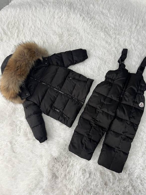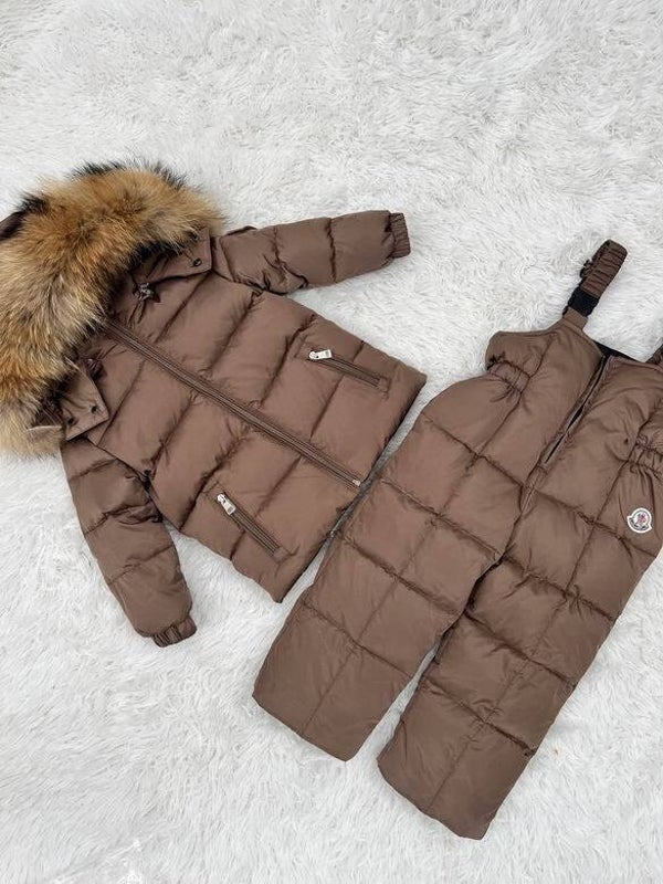 Geef je kleintje de ultieme bescherming tegen kou met deze luxe Moncler baby winterset. Elke set bestaat uit een geïsoleerde pufferjas met bontgevoerde capuchon en bijpassende overalls, perfect afgestemd in kleur en stijl. Verkrijgbaar in diverse tinten zoals leopardprint, mauve, navy, bruin en glanzend zwart, allemaal met hoogwaardige afwerking en een subtiel logo-embleem.