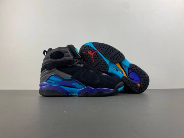 Air Jordan 8 Retro "Aqua" 2025 – G-Versie | Zwart/Grijs/Paars/Blauw | Maten US 7–13 | Artikel 305381-006 | Release 27 Sept