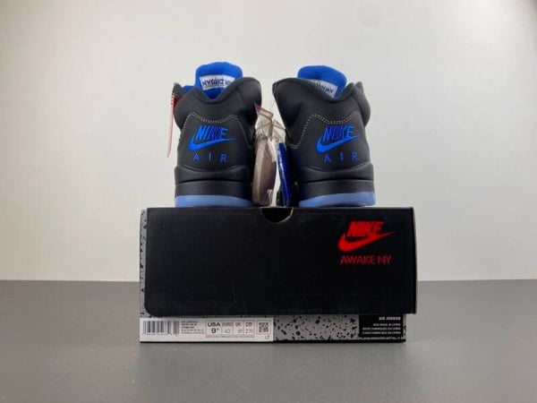 Air Jordan 5 x Awake NY "Racer Blue" – A1-Versie | Zwart/Blauw | Maten US 7.5–14 | Artikel DV4982-004 | Release 30 Aug